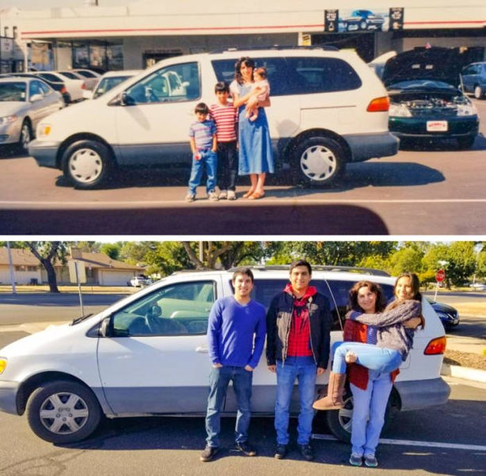 Un soldat des années 70 pose 40 ans plus tard, une famille reproduit une photo d'enfance, la célèbre statue ratée de Ronaldo, le mur de Berlin ou encore l'ancêtre des smartphones... Il y en a pour tous les gouts.