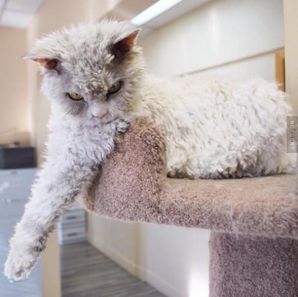 Après Tardar Sauce plus connu sous le nom de Grumpy Cat voici Albert, un joli selkirk rex gris et blanc qui a la particularité d'être TOUT le temps en colère. Enfin la nature lui a pas laissé le choix et tant mieux pour nous.
