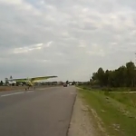 Au volant de sa voiture un russe filme l’atterrissage forcé d'un avion sur une route.