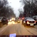 Un automobiliste s’arrête pour corriger des piétons qui traversent n’importe où (Russie)