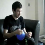 Notre Régis du jour va essayer de nous faire un petit tour de magie avec un ballon gonflable, un délire qui va vite se retourner contre lui lorsque le ballon va prendre feu et exploser sur sa figure.