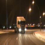 Vidéo tournée en Pologne où un routier en manque de sensations fortes s'offre une jolie séance de drifts avec son camion le long d'un rond point.