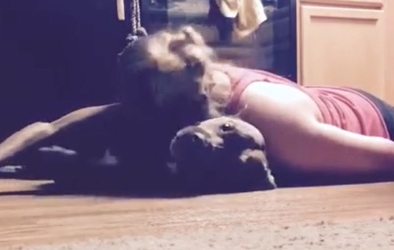 Ce chien a été dressé pour protèger la tête d'une personne épileptique