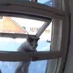 Un chat essaye de passer par une fenêtre entrouverte, si il a pas mal de difficultés au début la manière avec laquelle il va réussir son coup et digne des meilleurs Yamakazi.
