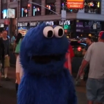 Sur la place de Time Square, Cookie Monster (Macaron le glouton de 1, rue Sésame) va rester scotché à la vue de deux SDP distribuant des tracts topless. On peut le comprendre...
