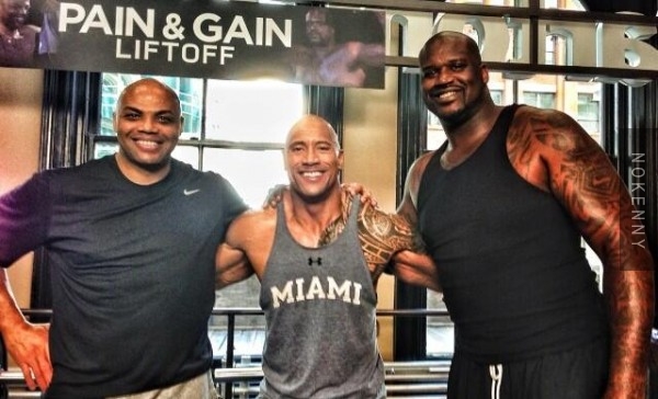 Arnold Schwarzenegger à coté de Wilt Chamberlain et André "le géant" ou encore Dwayne Johnson avec Shaquille O'Neal et Charles Barkley.