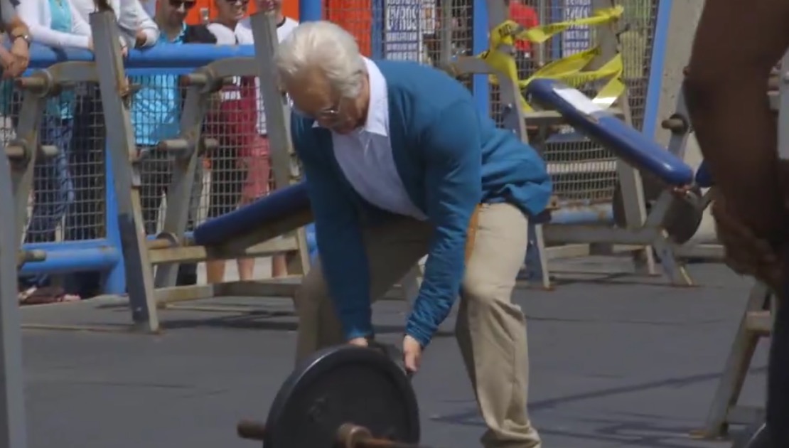 Pour une publicité virale de la marque de boisson Smith & Forge, déguisé en vieux, l'haltérophile professionnel Kenneth Leverich est venu surprendre les bodybuilders de Muscle Beach (Los Angeles).