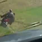 Sur un deux roues, deux types qui semblent avoir prolongé un peu trop l'apéro, vont se ramasser tranquillement sur le bord de la route.