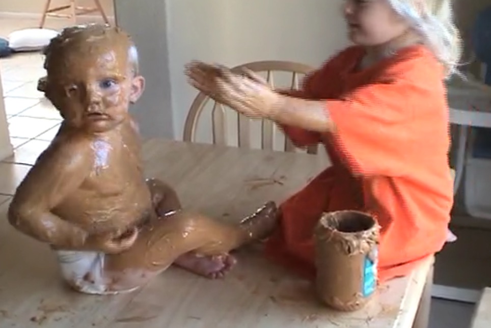 En rentrant chez elle une mère a la grosse surprise de voir que sa fille a totalement recouvert son petit frère de peanut butter (beurre de cacahuètes).
