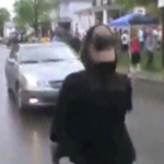 L'illuminée du jour c'est cette fille qui en plus de danser sur la route va avoir la brillante idée de sauter sur une voiture. Et oui ça fait mal forcément...