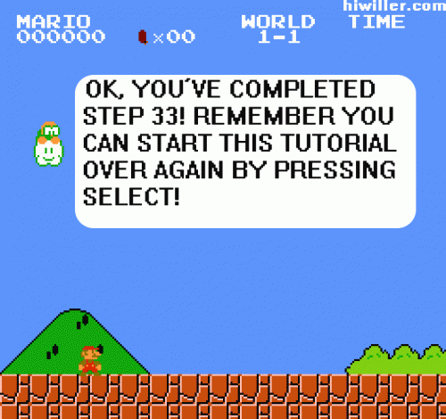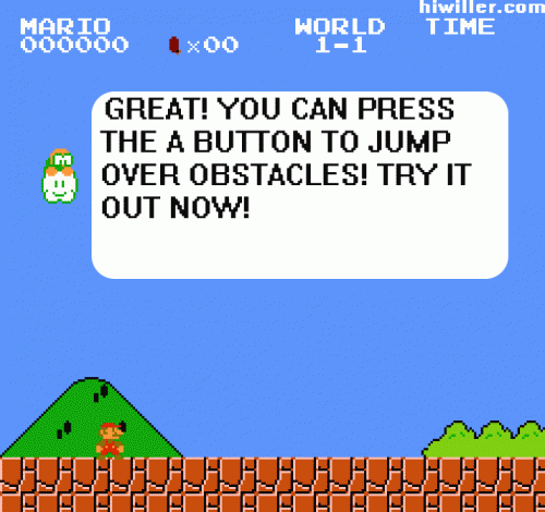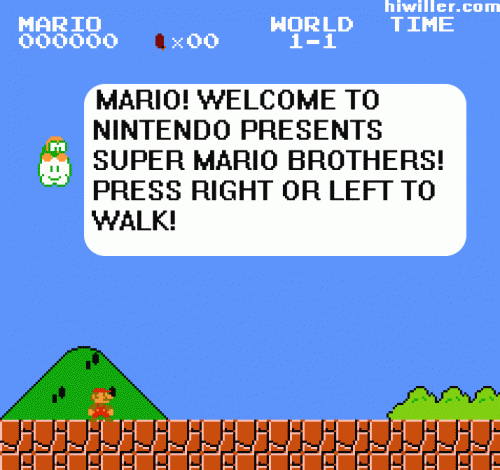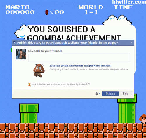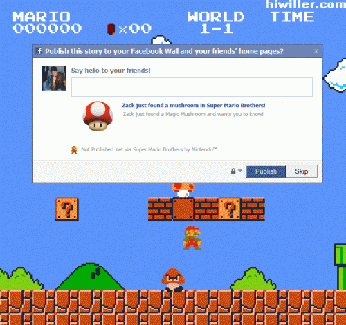 Quelques images assez marrantes de ce que donnerai le célèbre jeu de Nintendo, Super Mario Bros si il sortait aujourd'hui. Avec l'intégration de Facebook et les nombreux tutoriels pour les mauvais joueurs d'aujourd'hui.
