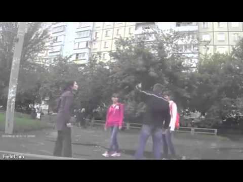 Un homme qui n'est pas très gentil avec ça femme se fait remettre à ça place par une écolières russe.