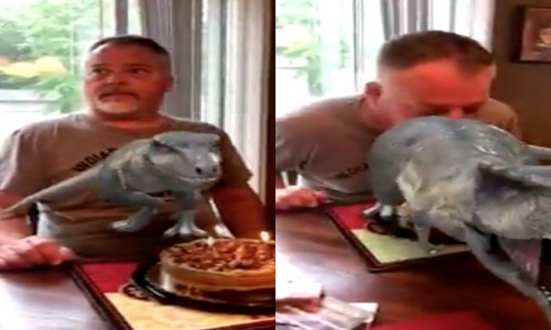 Un jeune a eu la bonne idée d'utiliser le filtre dinosaure de Snapchat pendant que son père soufflait ses bougies d'anniversaire, le résultat est sans appel.