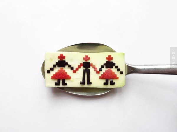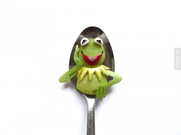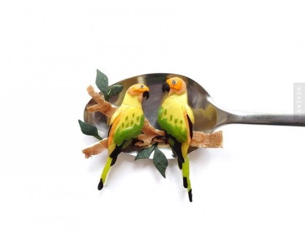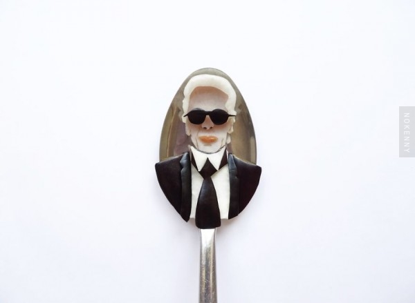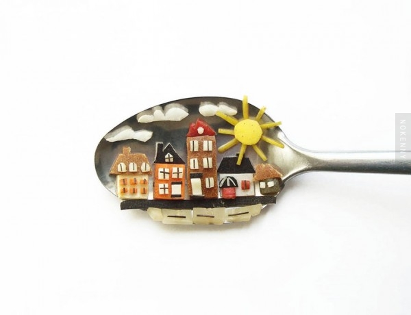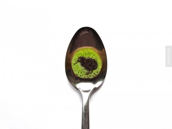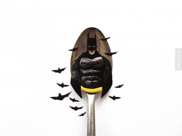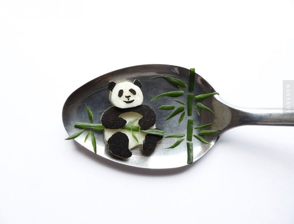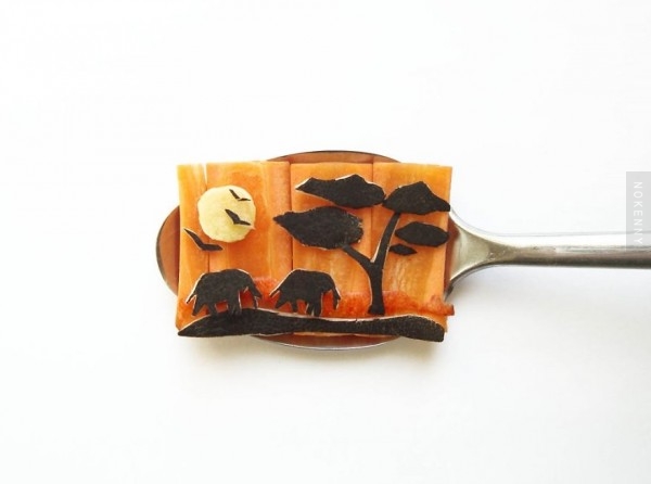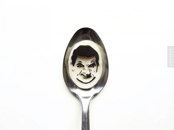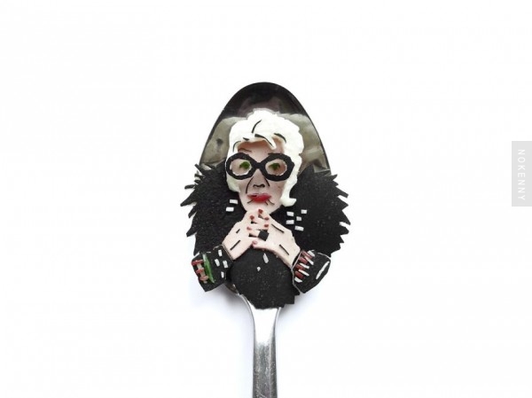 Cette artiste roumaine du nom de Loana Vanc s'est spécialisée dans une pratique aussi amusante qu'originale qui consiste à dessiner sur une cuillère un peu tout et n'importe quoi mais en utilisant la nourriture qui est dans son assiette.