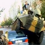 Pour punir les automobilistes qui garent mal leur voiture en Lituanie, on ne met pas d’amende, non c'est gratuit car on utilise une méthode bien plus agressive et bien plus efficace en empruntant un tank à l'armée.