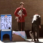 Après le phénomène Free Hugs voici celui du Free Pugs, le principe est le même sauf qu'au lieu de donner des câlins le mec donne des pugs, forcément ça fait beaucoup moins plaisir aux passants...