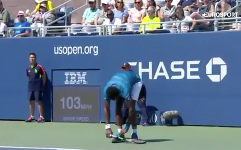 Gaël Monfils réalise un énorme smash à 360°, sur sa balle de match...