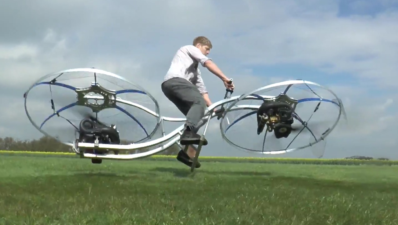 Avec deux hélices, deux petits moteurs et quelques morceaux de ferraille ce gars s'est fabriqué son propre Hoverbike.