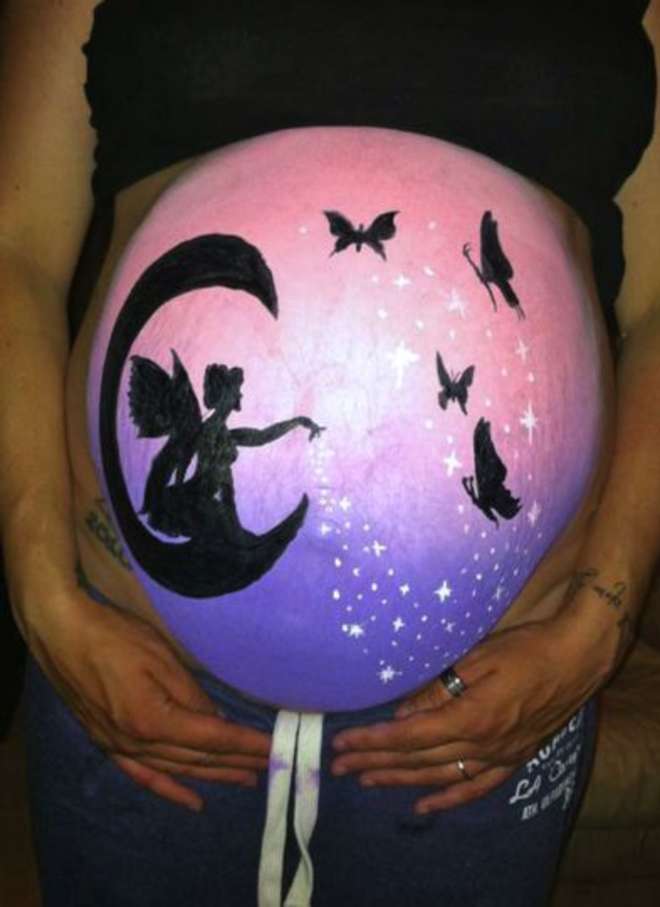 En attendant la naissance de son fils, ce futur père s'éclate en dessinant tout et n'importe quoi sur le ventre de sa femme enceinte.