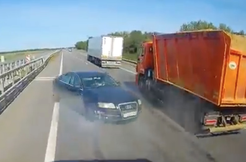 En Russie un automobiliste a utilisé la bande d'arrêt d'urgence pour doubler plusieurs camions, une très mauvaise idée...