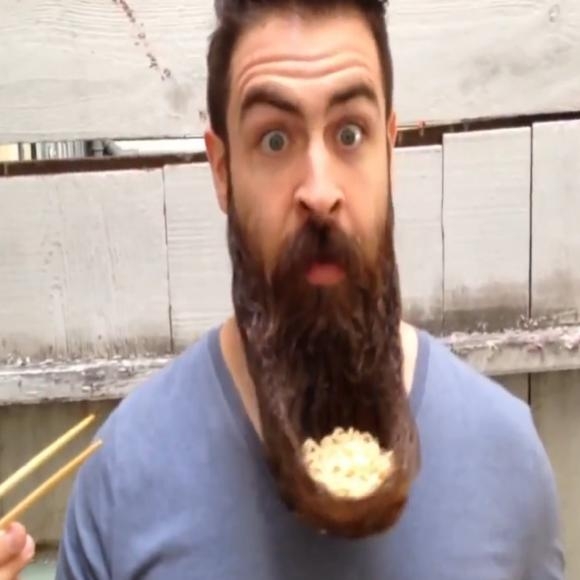 La vidéo "légèrement" dégueulasse du jour c'est ce type qui mange ses nouilles posées non pas dans une assiette mais dans sa barbe.