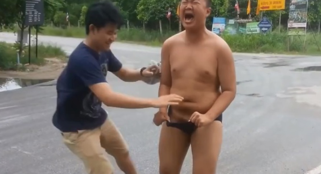 En Thailande un mec relève "le défi des fourmis rouges", un défi qui consiste à prendre une poignée de ces bestioles et se les mettre dans le slip.