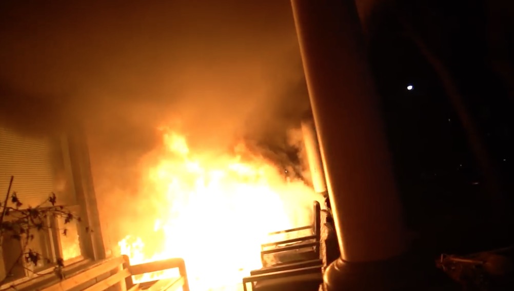 Sérieux qui a l'idée de filmer aussi "proprement" quand t'as le feu à ta baraque !