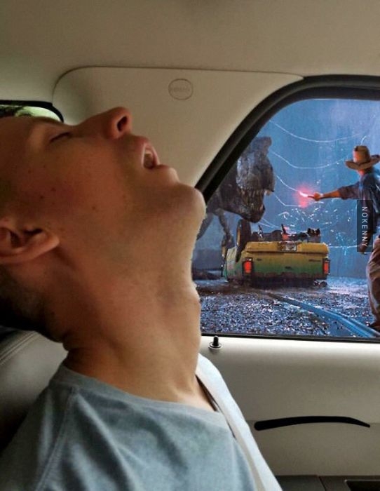 Il s'endort pendant un trajet en voiture et demande à internet de retoucher sa photo (10 photos)