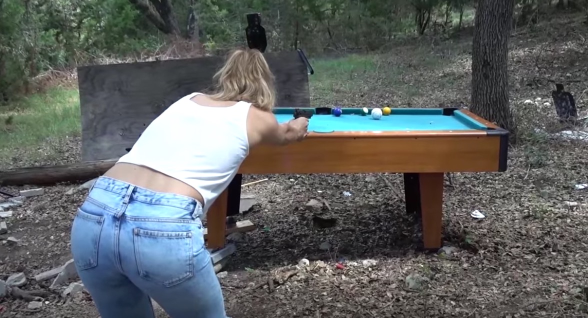 Parce que c'est l'Amérique, deux couples s'offrent une partie de billard dans laquelle les queues sont remplacées par des armes à feu. Elle est bien bonne ouais.