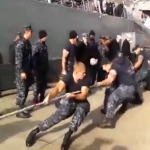 Dans la série "la guerre froide est pas si loin", ces militaires russes et américains qui se défient au jeu de la corde.