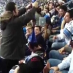 Un spectateur un peu trop motivé pour attraper une balle dans les tribunes
