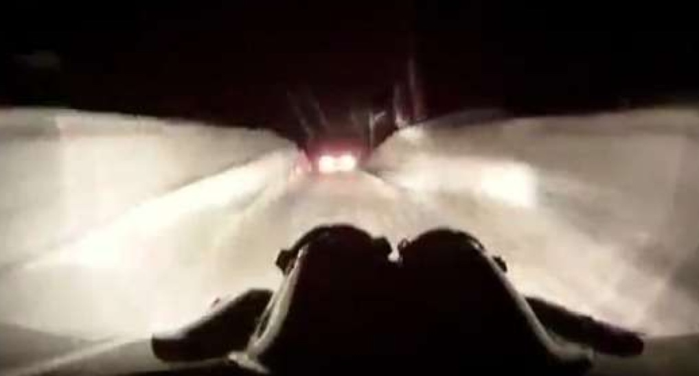 Hier soir notre ami Régis a eu la bonne idée de s'offrir une descente en bobsleigh / luge ou je ne sais quoi en pleine nuit.