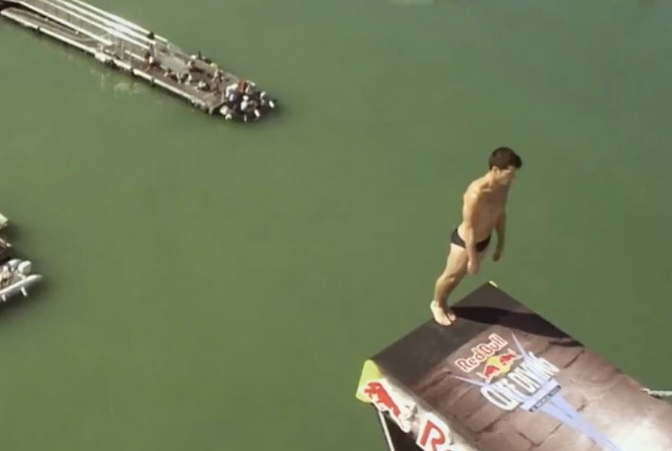 Au Red Bull Cliff Diving World Series (à La Rochelle), le plongeur Steve LoBue a fait flipper tout le monde en ratant son saut. Heureusement il s'en sortira indemne...