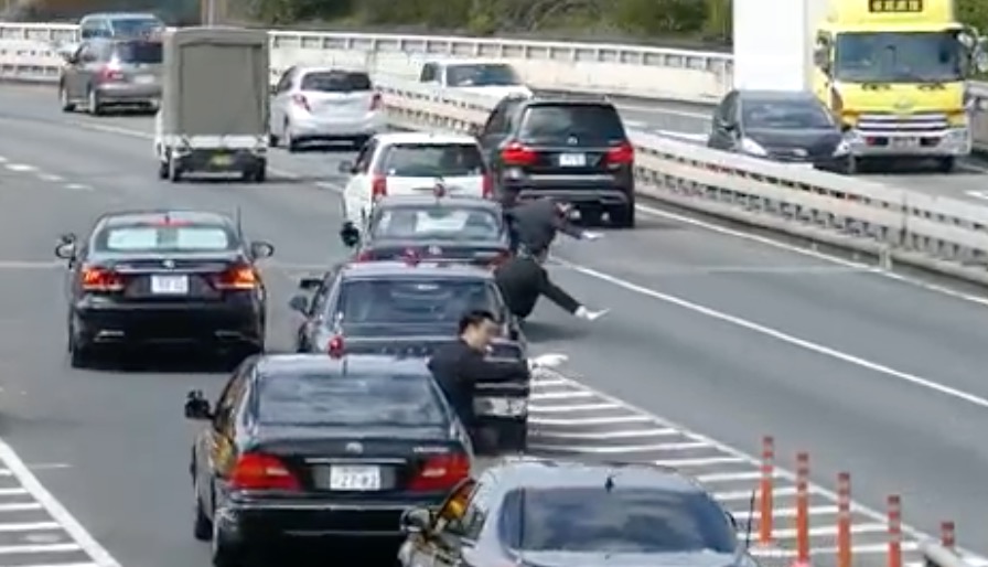 Au Japon, quand le Premier ministre Shinz? Abe entre sur l'autoroute, les agents de sécurité de son cortège font vraiment le maximum pour que tout se passe bien.