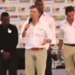 En plein discours, le président colombien Juan Manuel Santos va s'oublier un peu et se pisser dessus devant son public.