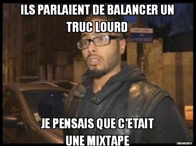 Une petite compilation d'images très sympathiques, les meilleurs détournements trouvés sur Choualbox, Facebook et Twitter de l'interview de Jawad Bendaoud, l'homme qui a prêté son appartement aux terroristes de la rue Saint-Denis.