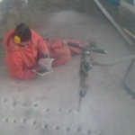 Sur un chantier un ouvrier nous montre comment utiliser un marteau-piqueur sans se fatiguer, "like a boss", sans les mains. Manque juste une petite bière et c'est parfait.