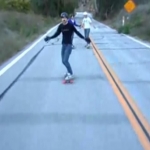 Quatre type font du longboard sur une route de montagne, tout s'annonce vachement cool jusqu'au moment où, en pleine vitesse de croisière, l'un d'eux va abandonner le navire en se ramassant violemment sur la voie inverse.