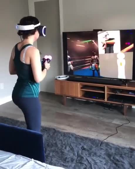 Une fille découvre la boxe en VR (réalité virtuelle)