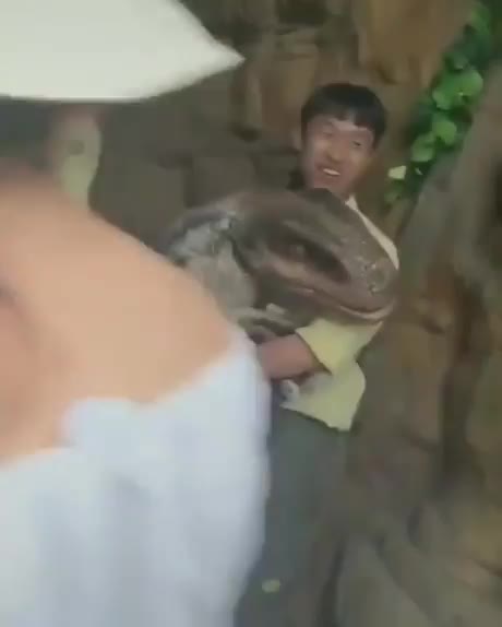 Un ouvrier fait une superbe imitation des dinosaures de Jurassic Park