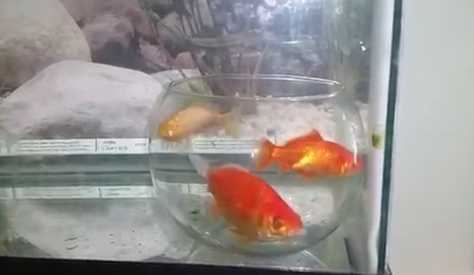 Mettre des poissons rouges dans un bocal dans un aquarium
