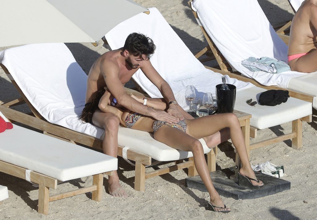 La star de télé-réalité française, Nabilla Benattia, seins nus à la plage aux cotés de son petit ami Thomas Vergara§Instagram: https://instagram.com/nabillanew).