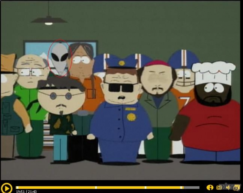 Vous le savez sans doute pas mais il y a un Alien caché dans TOUS les épisodes de South Park, il est toujours très bien caché et le retrouver à chaque nouvel épisode et parfois encore plus excitant que l'épisode lui même. Bref, voici les photos des apparitions de ce fameux Alien.
