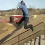 Notre Régis du jour est un américain qui fait exprès de se balancer du haut d'un grand escalier de manière à atterrir sur la rampe avec couilles. Forcément ça ne fait pas du bien...