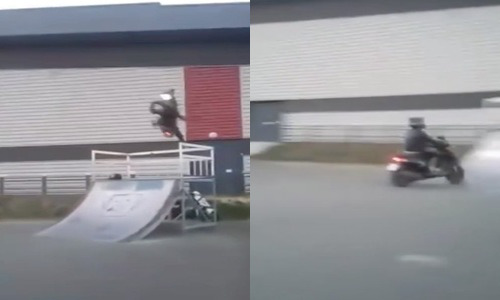 Il va au skatepark avec un véhicule pour personne à mobilité réduite