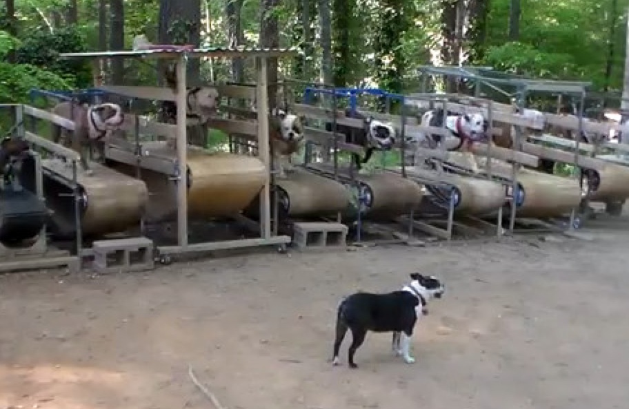 Je ne sais pas si ce type participe à des paris illégaux impliquant des animaux mais l'installation de sa salle de sport pour chiens et assez fascinante.