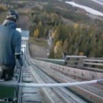 Le problème du saut à ski, même du ski en général, c'est qu'il faut de la neige. Heureusement certains casse-cou comme ce type, trouvent le moyen de pratiquer leur passion même en été.