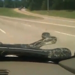 Après "Des serpents dans l'avion", voici "Un serpent sur le pare-brise", un autre film à petit-budget où un type a la surprise de se retrouver sur l'autoroute avec un serpent sur ses essuie-glaces.