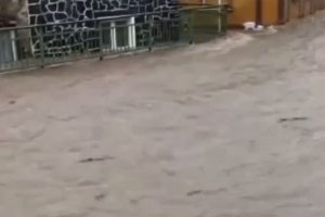 Une maison en bois se fait emporter par une rivière, bah ouais fallait lire Les Trois Petits Cochons