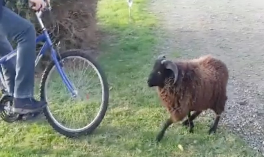 Dans la série "badass", ce bélier qui va montrer à un homme et son vélo qui est le chef.